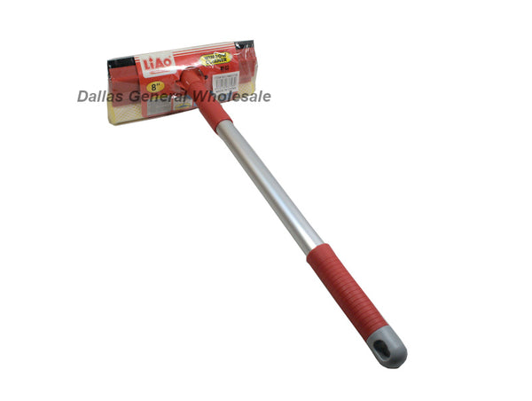 LoginWholesale extendable window cleaner with 8" wide brush. This window cleaner can be used for any type of window or glasses. The handle on the brush can be extended up to 28" long to help you reach higher corners. These window brush cleaners come with 2 side edges to leave glass squeaky clean. Use instruction is included on the packaging.