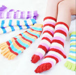 These girls fuzzy toe socks are soft and designed in bright colored strips. These women's fuzzy toe socks are perfect stocking stuffer for Christmas morning as home socks. Stock up on these ultra-soft, stylish, bright colored designed fuzzy toe socks now!!