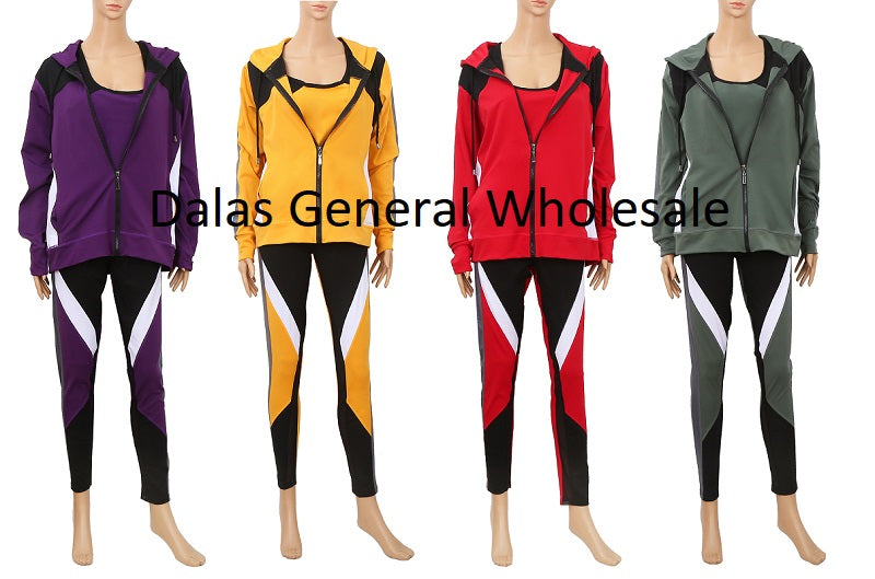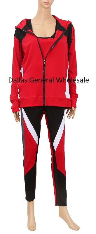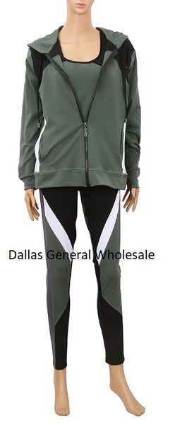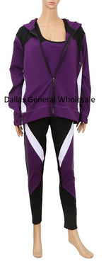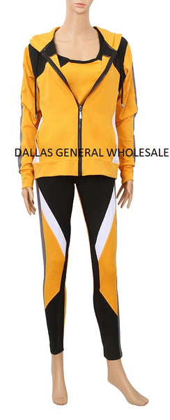 LoginCheap bulk wholesale of ladies fashion casual active sports wear set. This matching set of ladies casual fashion sports wear is featured with hooded long sleeves jacket, race back top and long pants. The active top is designed with a hood, zips up and 2 front pockets.