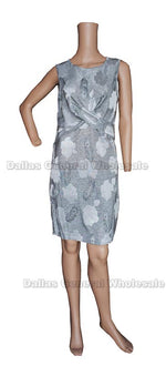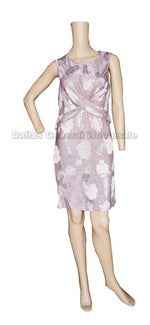 Cheap bulk wholesale of ladies sleeveless fashion casual dresses. These ladies casual dresses are featured with cute twist tie the front, hide a little bit of your tummy. These casual cute floral printed dresses can be wore very casually or out for dinner. Fits women most ages. Knee length dresses for most ladies.