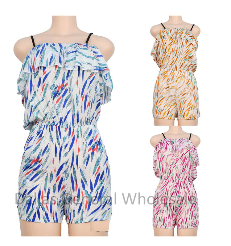 Cheap bulk wholesale of girls Summer fashion casual flowers printed rompers in assorted colors. These pretty printed fashion rompers features with open shoulders design. The shoulder cut out look is super edgy. These Printed Stylish and Fashionable printed Rompers are machine washable and are available in different colors and sizes. Printed Stylish rompers are very cheaply priced and is a great item to add to your inventories in the summer times.