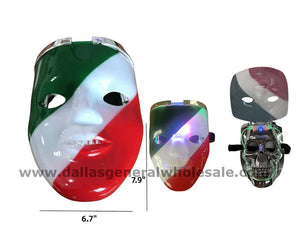 LoginWholesale novelty gifts LED flashing light up double layer Halloween theme skull masks. These flashing light up masks are featured with 2-in1 masks; one Mexico theme mask and a skull mask all together. These plastic glowing in masks are great for any Halloween parties. Stock up on these glowing novelty toys today.