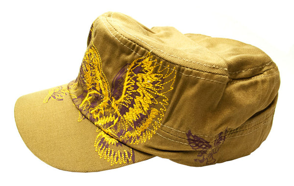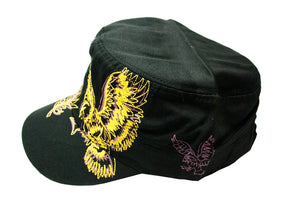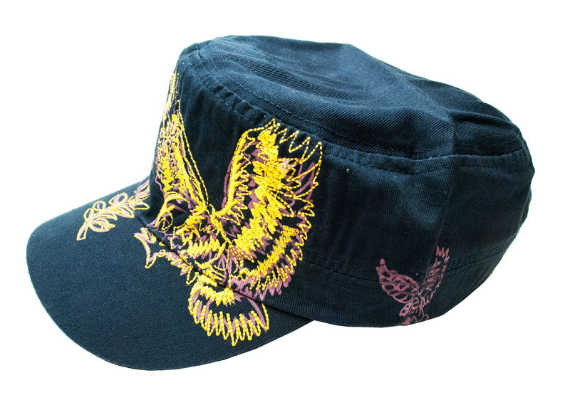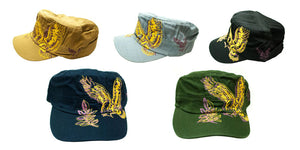 These fashion cadet caps are suitable for any day wear. These Fashion Cadet Hats are made with high quality cotton. These Trendy Military Caps are designed with an Eagle with high quality stitches, a unique style. Great buy for your store. Assorted colors will be in a dozen, plenty of choices for your customers. These military Cadet Caps can be unisex and can be adjusted in the back of the hat via a brass buckle.