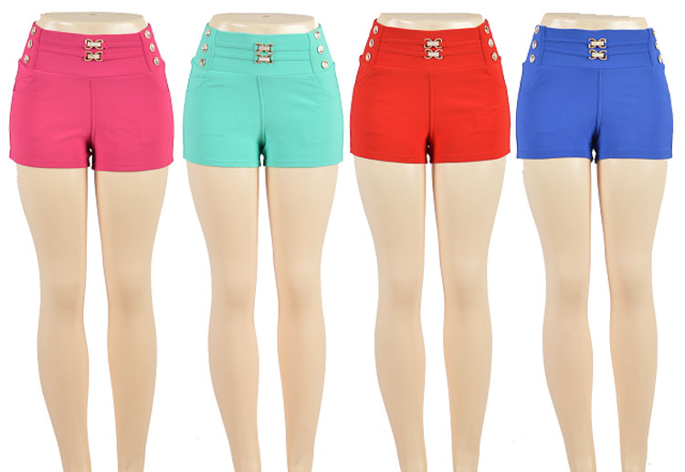 LoginThis is a very cheaply priced bulk wholesale of Women's Apparel; Solid Color Buckle Shorts with Pockets. These Women's Solid Color Shorts are beautifully designed and is very popular! These Women's or Teen's Shorts with Gold Buckle Designs will go with almost any top; a beautiful look in the summer time. These Women's Shorts are featured with both pockets in the front and in the back, these solid color shorts are pulled on and very stretchy.