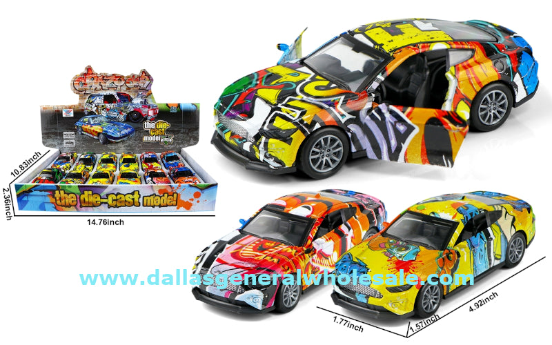 LoginCheap bulk wholesale of children's non battery operated super speed graffiti race car models. These race cars are operated on friction; simply pull the race backwards then release, the car will run on its own on friction. These inertial trucks are new in design with vibrant graffiti colors. All new inertial pop up truck that stands up as they go. These inertial mud trucks make 360 degree turns with car door opening.