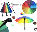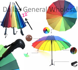 LoginBulk wholesale of rainbow colored automatic umbrellas for adults. These women's beautifully printed umbrellas are featured with satin silk material and strong metal umbrella ribs for durability. These adults umbrellas opens automatically with push of a button on the long easy operate handle. These adults printed umbrellas are suitable for both sunny and raining days. This bulk wholesale of Jumbo Size Adults Umbrellas are very competitively priced and a great item for your general merchandise store, dollar store or any convenience store.
