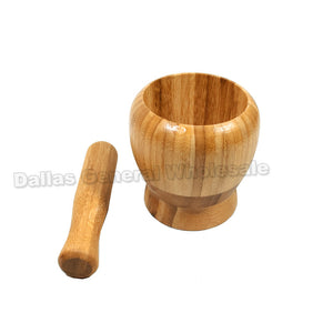 LoginWholesale general household kitchen wooden mortar and pestle sets. Wooden mortar and pestle sets allows for quick crushing of any type of spices and herbs. These wooden mortar and pestle sets are modern in looks and handy in functionality. Mortar and pestle sets are ancient kitchen cooking tools to grind and crush cooking ingredients. Stock up on these kitchen utensils today!