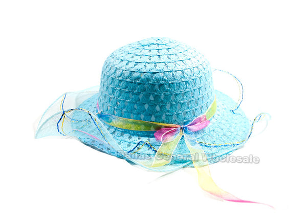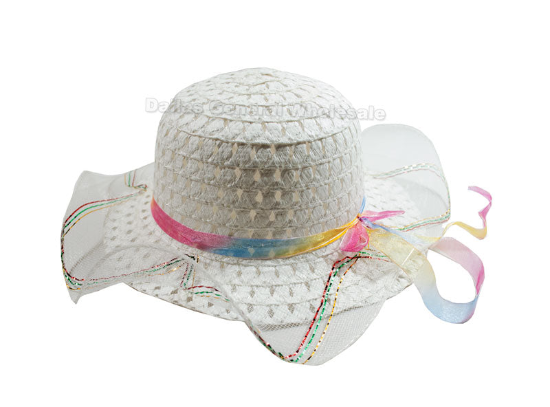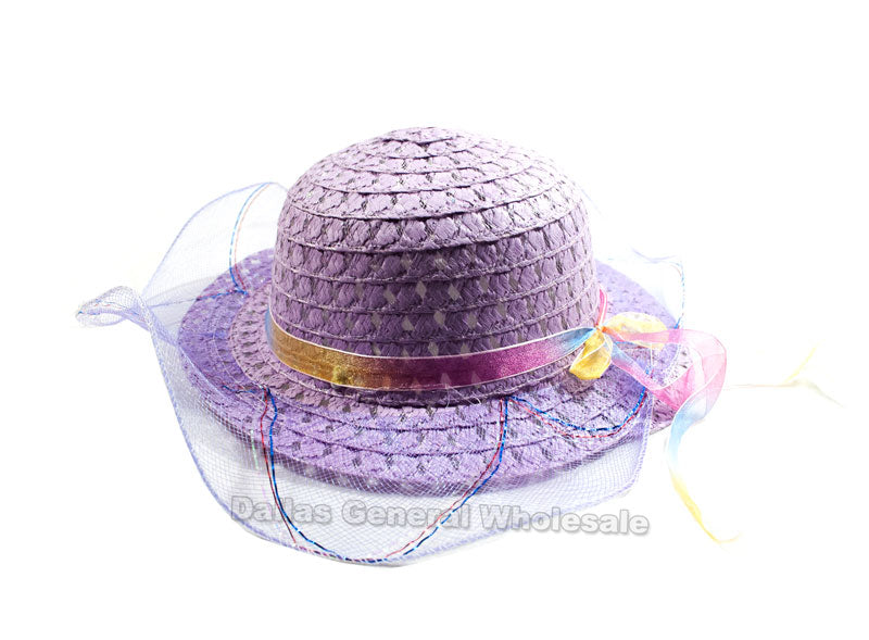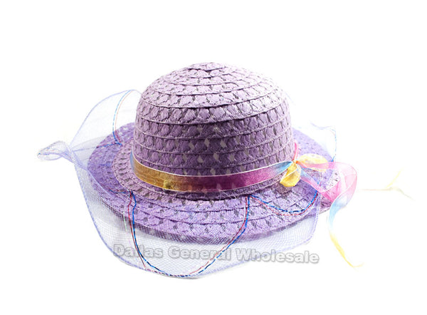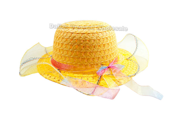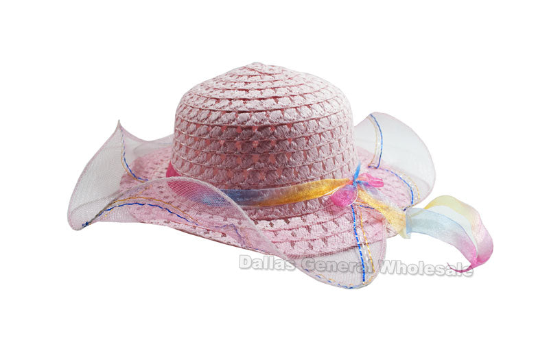 Wholesale kids adorable straw hats. These straws are very cute in design and very economical to keep the sun off their little faces during the hot Summer months. These little girls straw hats are one size with an elastic chin wrap. These little girls straw hats are featured with several bright colors.