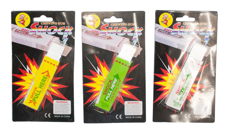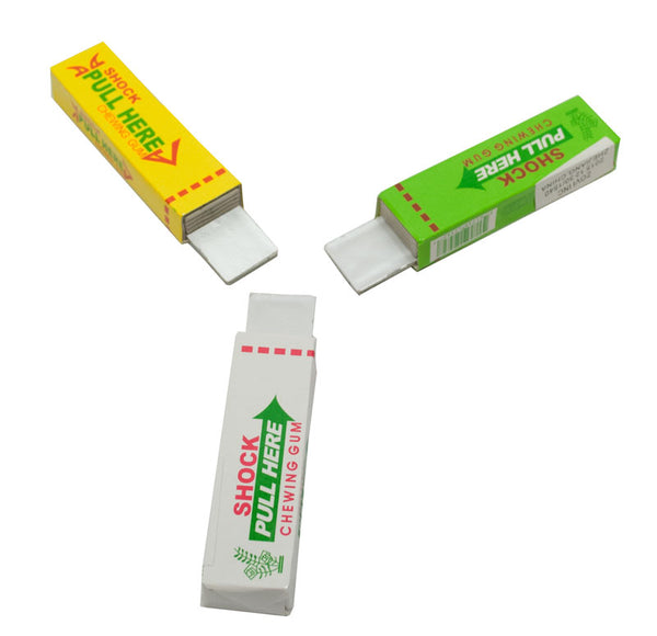 LoginBulk wholesale of shocking gum. This shocking gum delivers a minimum shocking effect every time you pull onto the gum. This shocking gum is a good old time novelty gag gift.