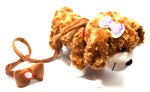 - Each fluffy toy dog measures about 12" long x 9" tall with leash of 29" in length