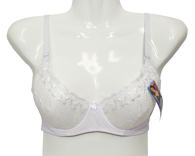 Assorted solid colors of ladies full coverage sexy bras with elegant lace designs. This women's undergarment is very cheap bulk wholesale with many sizes available. 1 unit of this item is 6 pieces of assorted colors of bras. These full cup bras are thinly padded, and wired. This set of 6 pieces of women's sexy bras are designed with elegant details; an must have item in your ladies lingerie or bras inventory.