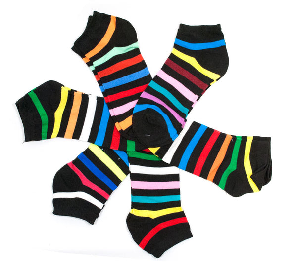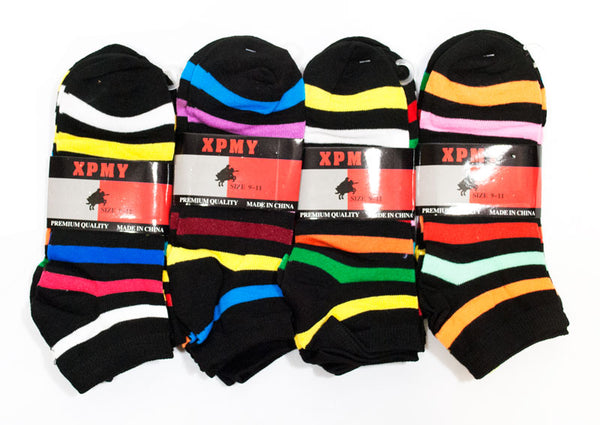 LoginBulk wholesale of women's strip printed casual ankle socks. These cute designed ankle casual socks are great for women, or young girls. These women's casual socks are perfect for everyday wear or sports wear. These ladies cotton socks are designed with elastic cuffs and colorful strips.